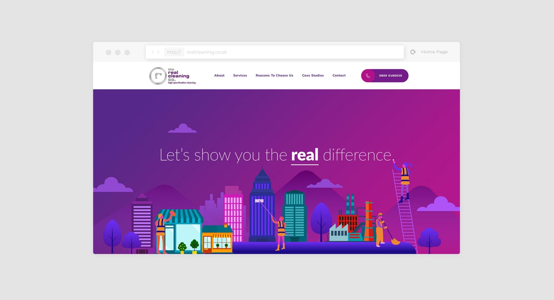 The messages and images we created and applied to the new website design are used throughout the business. We wanted to get across the personable yet highly professional nature of doing business with Real Cleaning and to set them above their competitors as a firm you could truly believe in for the best possible job on any project, whatever the challenges.